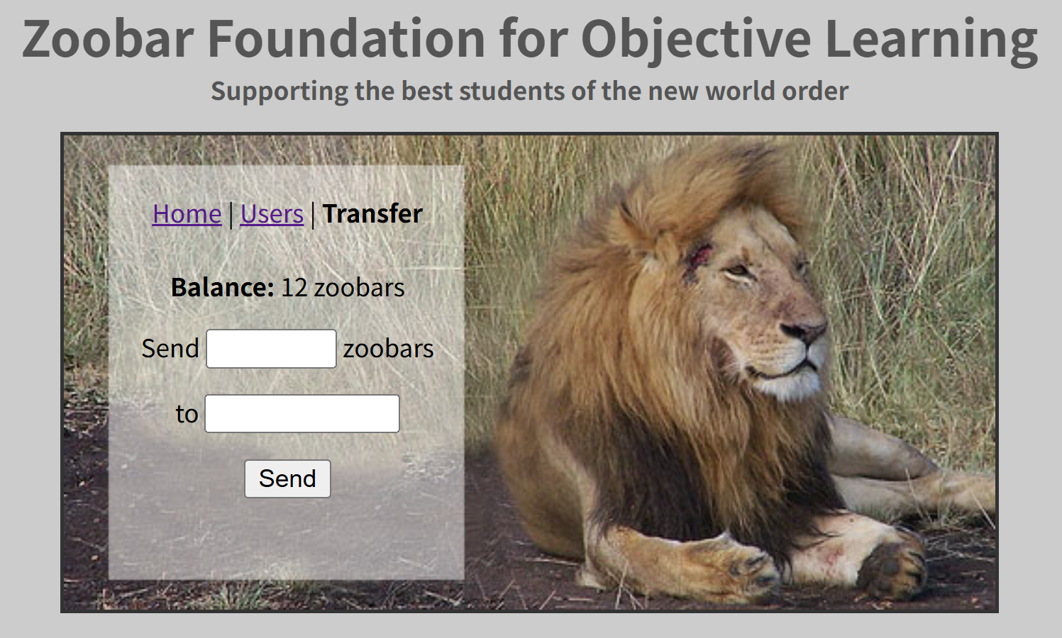 - 一个主页可以给每位访问者赠送一个 zoobar(每分钟限一次)。